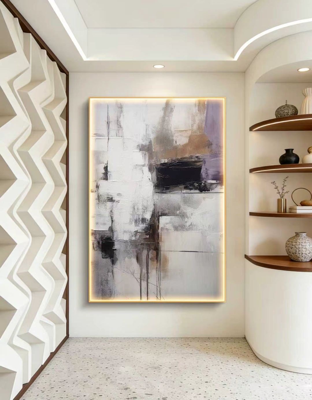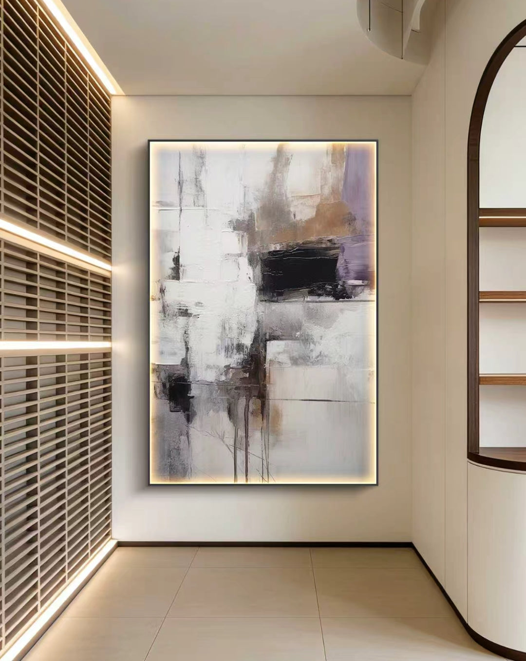 Each piece includes a sleek, modern aluminum frame that enhances the artwork’s presence and protects its edges. Integrated adjustable hooks allow for easy and secure hanging. -